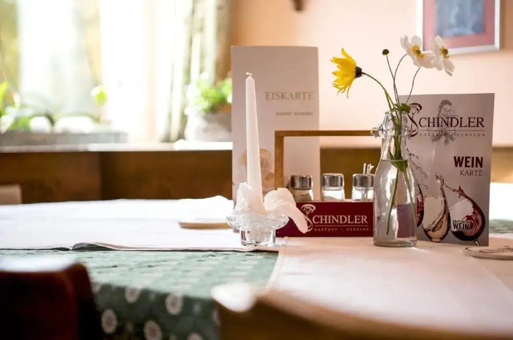 Zo stel je je een plattelandsherberg voor. Rustiek, nuchter en origineel. Je kunt zien dat het al door de 6e generatie wordt gerund. Ook tijdens het eten kunt u de landherberg in de beste zin van het woord voelen. Geweldige prijs-kwaliteitsverhouding. Gasthof Schindler is het bewijs dat je niet altijd vier of vijf sterren op je deur hoeft te hebben om je goed te voelen. Voor mij een absolute aanrader, graag weer. Had een "magisch" verblijf...